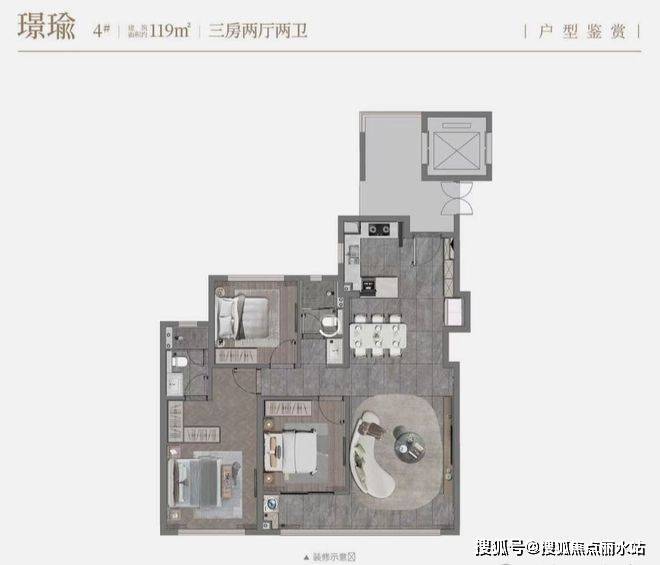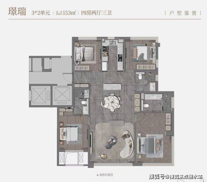 亮点:两个卧室配备270°飘窗,视野开阔;独立电梯厅提升了归家仪式感。