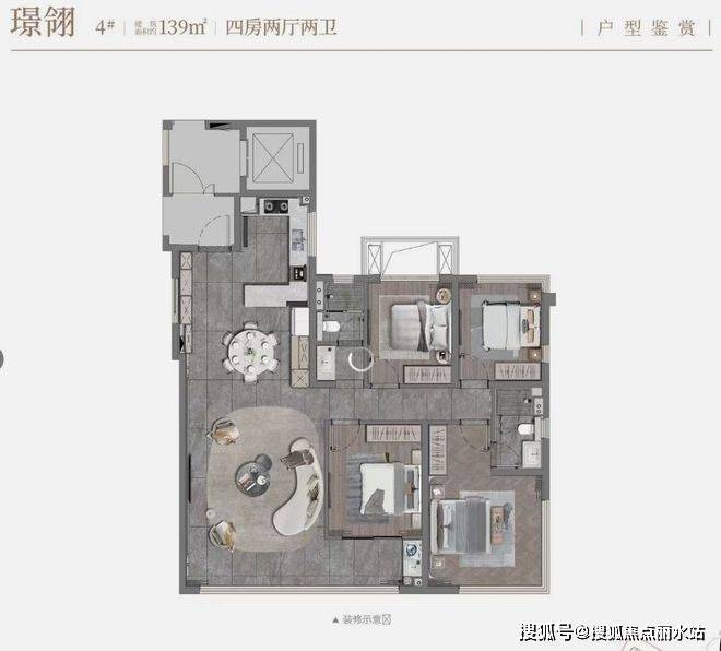 亮点:主卧配备双面拐角飘窗,在139㎡面积段实现四房布局,空间利用率高。