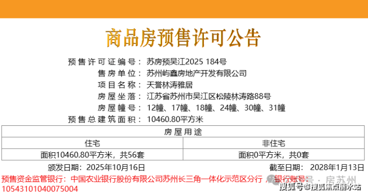 2025年10月16日,项目第一批房源领证,共56套,位于12幢、17幢、18幢、24幢、30幢、31幢,货值约3.8亿。