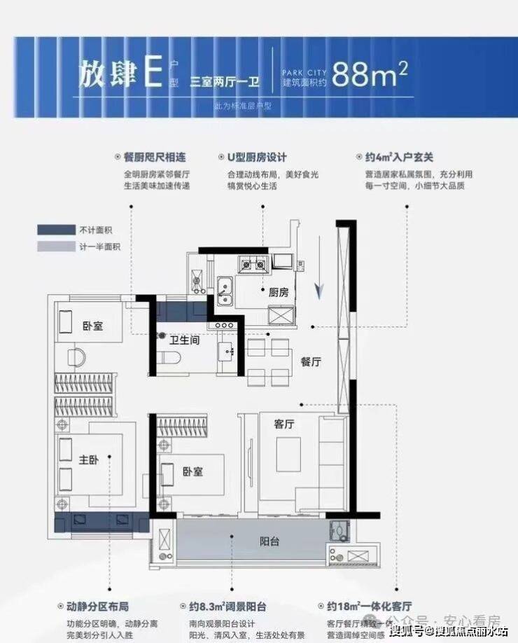 约87–113平第四代住宅,公摊低得房率高。