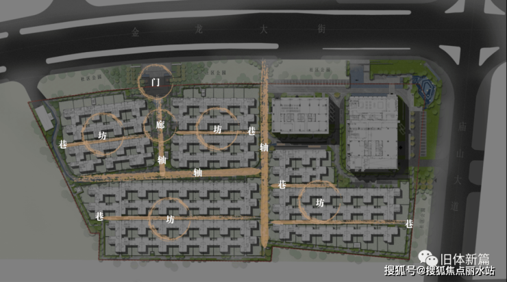 对于礼序结构的重视同样体现在了院落的组团中,通过对门、轴、廊、巷、坊的思考,将秩序美延伸至了整个场地,打造五重归家礼序。