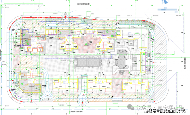 从公布的总平图批前公示来看,整个楼盘的规划是围合式布局。
