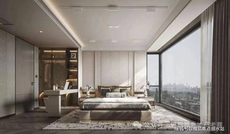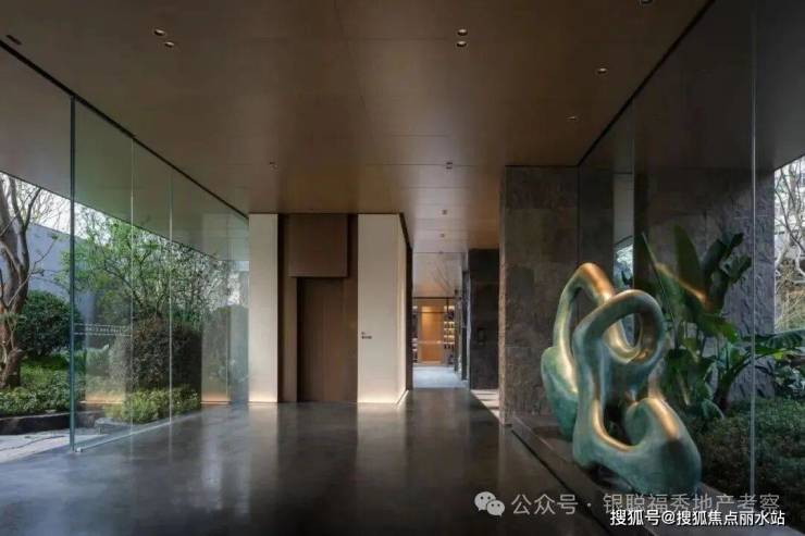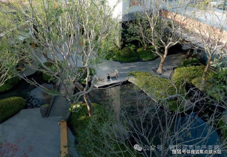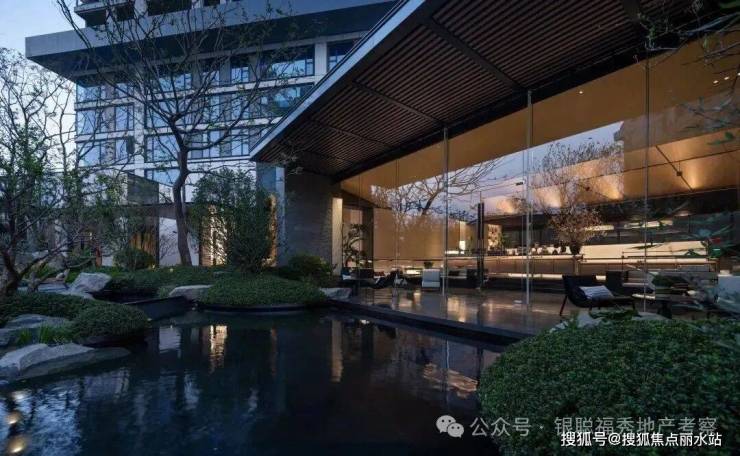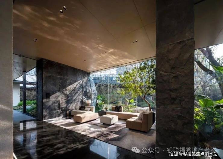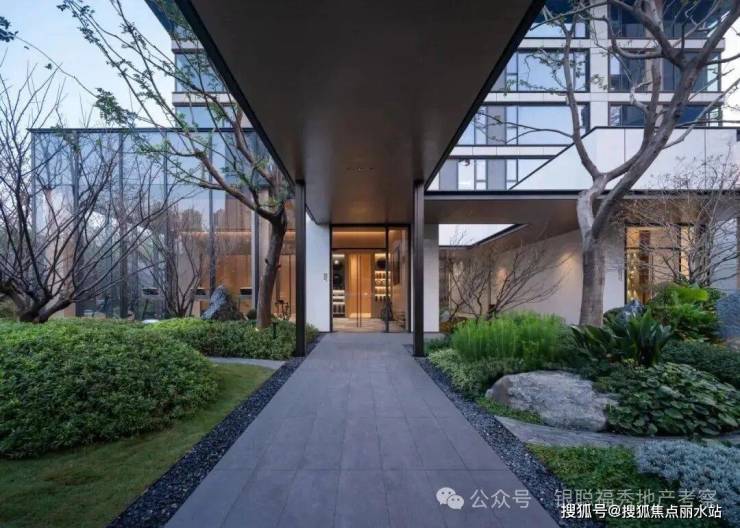 建筑整体采用围合式布局,实现景观最大化,形成超尺度中心花园。类公建现代都市颜大面积玻璃幕,搭配金属铝板和真石漆涂料,使得整体建筑大气简洁与线条流畅,建筑现代都市感气息浓郁。明亮的深灰色玻璃幕墙和暖色木纹铝板、深灰色铝板,不同光泽度的细腻对比使建筑变得轻盈并富韵律感,通过细节让建筑在色泽上更温暖近人。武汉首创度假式诗意园林,100%景观覆盖率:整体打造酒店度假式园林体验,通过大量乔木运用形成绿盖复刻林下时光,不同乔木组团,搭配近1000吨原山石材及水系,构建不同风格的景观组团,并兼具休闲,会客,静坐,儿童娱乐等各项功能。真正实现“景观做主角,建筑做消隐”。