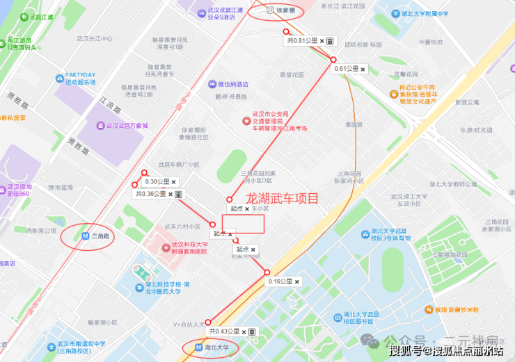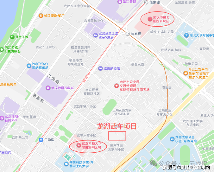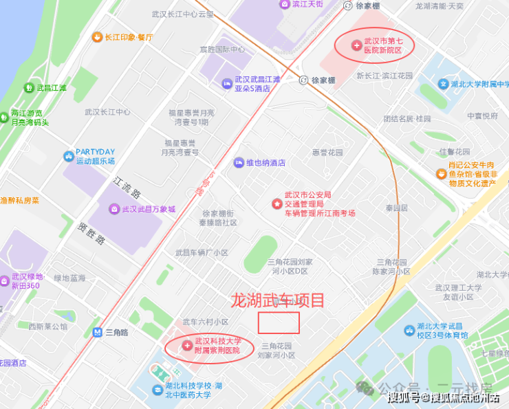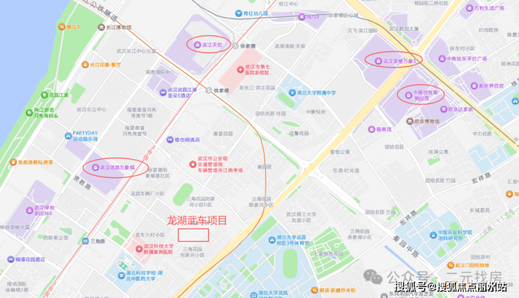 地铁:项目周边有5号线、7号线双地铁,距离5号线三角路站约360米,距离7号线湖北大学站约430米,距离7号线徐家棚站约800米。