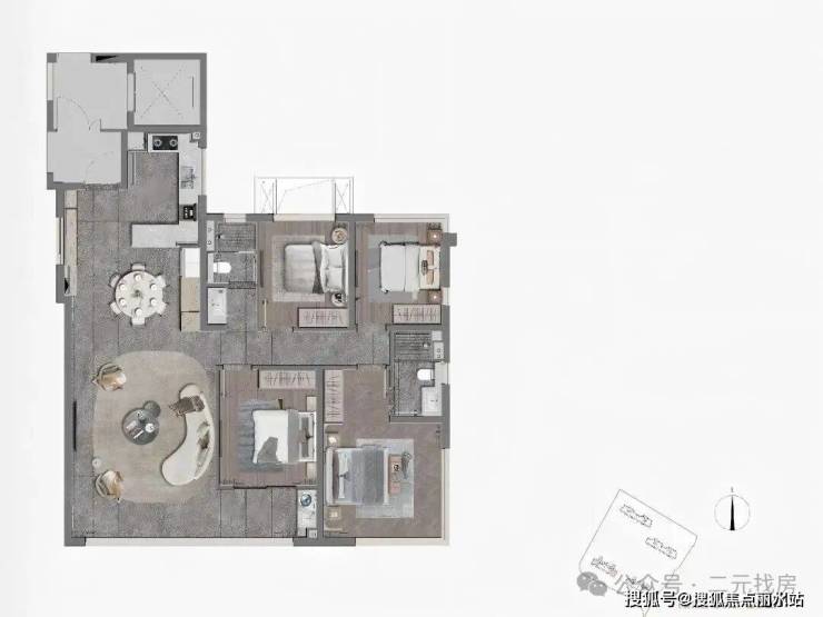 125㎡做四房,虽然比不上天创元萃127㎡做四房三卫那么极致,但也是非常优秀的。