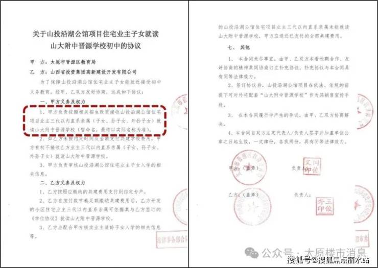 现已与太原市晋源区教育局签署相关文件,保障业主三代直系亲属(子女/孙子女/外孙子女),可就读山大附中晋源校区初中。