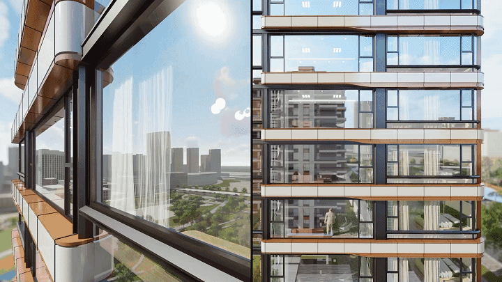 建筑材质上则选用浅色金属铝板搭配古铜色金属勾边。代表现代的浅色金属和古典气质的古铜相得益彰,以简洁现代的精致再度诠释属于城市的古典而又摩登。