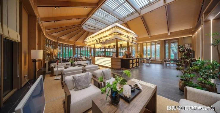 具有文化底蕴与现代舒适度的茶事空间,打造一方“不喧嚣自有声”的理想生活社交地。巧妙运用江南古典园林的“框景”手法,将室外山水景观引入室内,形成一幅幅动态的立体画作。