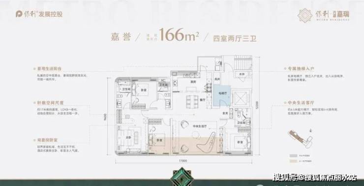 保利·沙湖嘉瑞项目共包含3个户型,分别是166、175、139平,具体分布如下: