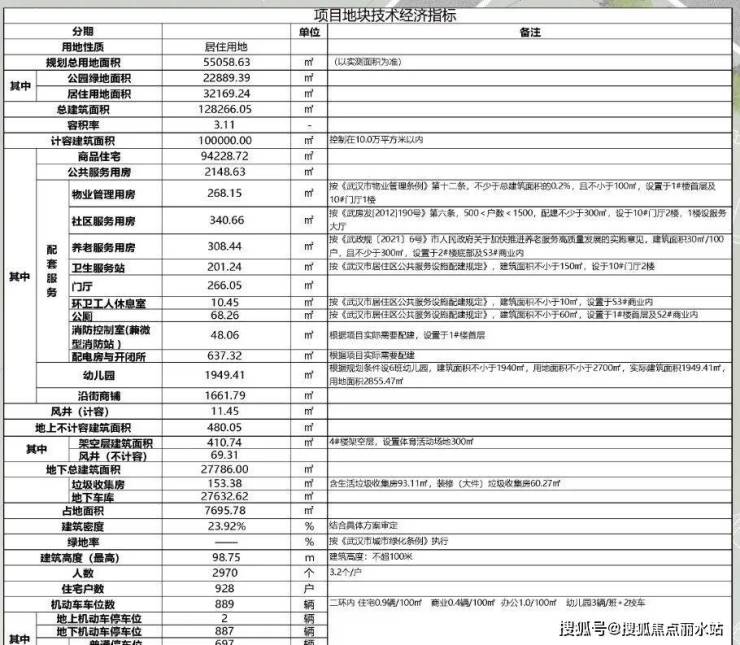地块规划用地面积约55058.63㎡,总建面约128266.05㎡,住宅建面约94228.72㎡,容积率约3.11,总户数928户,住宅机动车停车位889个。