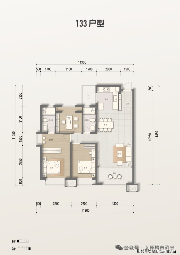 🌟【面积区间】:106㎡;115㎡;122㎡;133㎡