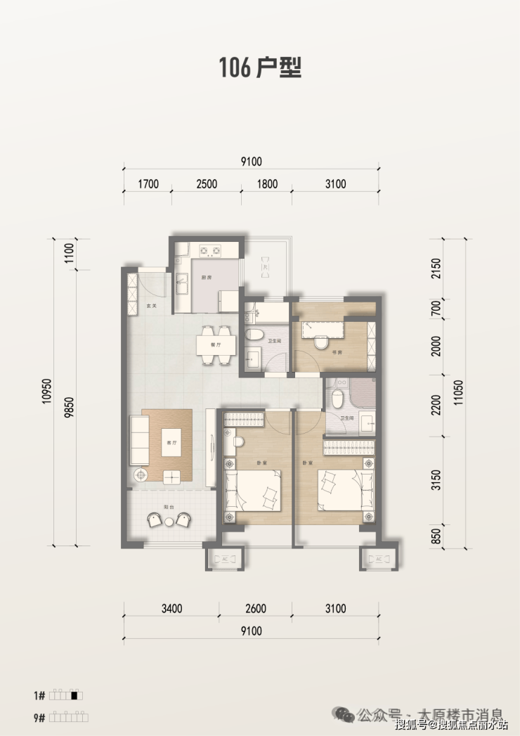 户型面积106平 - 133平,三室两厅两卫,高得房率。“五力” 设计,实用赠送多、改造成本低、通透亮堂、压缩无效空间、布局超优,居住体验直接拉满。