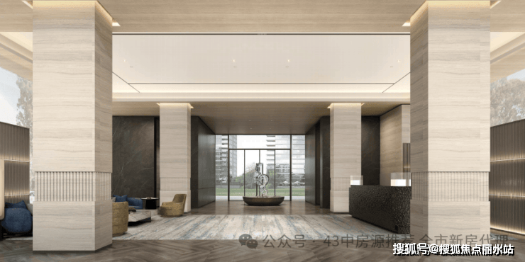 瑞璟春和主出入口处实现全人车分流,作为城市封面生活代言,瑞璟春和溯源传统精髓,糅合现代人性化需求,将自然美学与实用功能充分融合,通过酒店式大堂—风景连廊—宅间庭院聚落/全龄生活架空层—首层入户大堂—地下精装入户大堂五重归家礼序,营造尊崇归家感受。入户大堂(效果图)