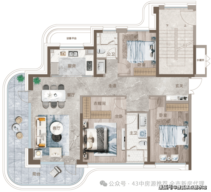 B户型·知亭,建筑面积125㎡,三室两厅两卫。