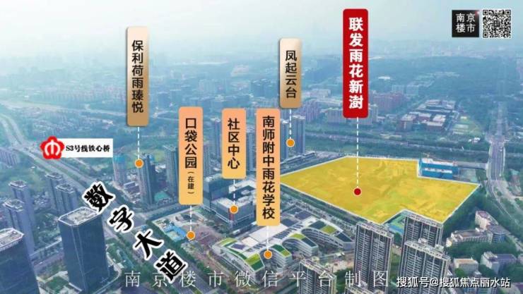 项目周边配套较成熟,距离S3号线铁心桥站直线距离大约四五百米,项目东侧就是幼儿园,南侧一路之隔就是9月即将开学的南师附中,还有马路对面的社区中心今年底也有望竣工,在建中的口袋公园等等,这些配套都在有序推进兑现中。