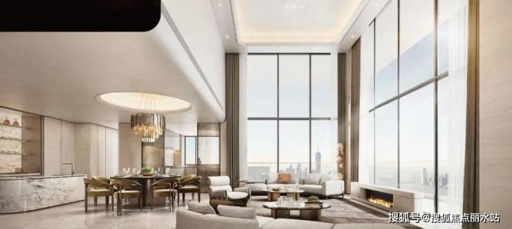 玻璃幕墙立面,最大化引入湖景与自然光。260m²户型更以“苏州唯一270°无界全景舱湖景”的姿态,将湖景作为客厅的天然背景。