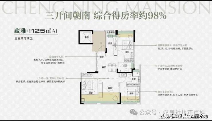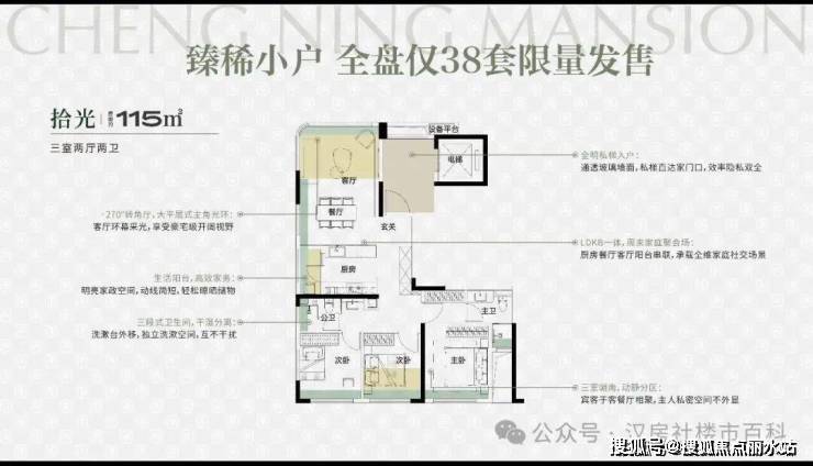· 全明私梯入户: 区域首创全明电梯厅,独梯入户尊享私密,缔造府邸级入户仪式