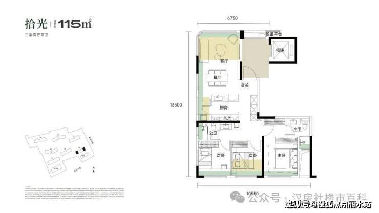 该户型位于1号楼的两端边户,3个卧室朝南,餐客厅一体全景舱设计,客厅为北、西(或东)两面采光,带独立电梯前室。三房设计满足家庭居住需求,双卫(公卫、主卧卫 )提升使用便利性,避免早晚洗漱等场景拥挤;厨房靠近入户,方便买菜归家后放置物品、处理食材;设设备平台,可灵活利用,如放置外机等,不占用室内空间。有玄关过渡空间,保障室内隐私,也可做收纳;卧室带一定收纳空间提升储物能力,让居住更整洁。