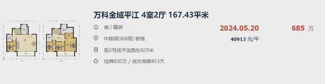 除了浅棠平江,像上面提到的万科金域平江,上半年也有一套跃层洋房房源成交,成交单价也接近4.1万元/㎡。