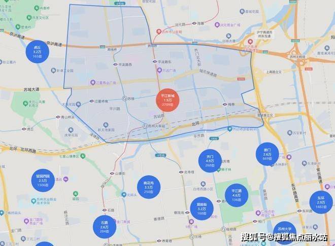 我们从二手平台可以看到,单一平台上,平江新城二手房挂牌量是姑苏区最大的,价格是最低的。