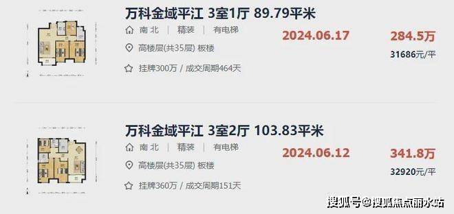 而万达东边的万科金域平江,上半年100㎡左右的三房成交价还要350万左右。