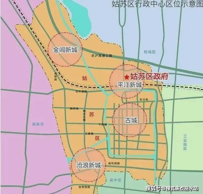 2012年姑苏区政府迁至平江新城,随后苏州市行政审批中心、公共资源交易中心、公积金中心、社保基金中心等市级行政服务机构相继迁入,平江新城成为姑苏区的行政中心