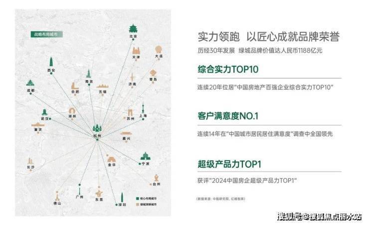 30载绿城,拓耕200余城,营造1000余座美丽家园,超5300亿元总资产规模,超1000亿元净资产规模,1188亿元品牌价值,著下经典无数。(截至2024年12月)