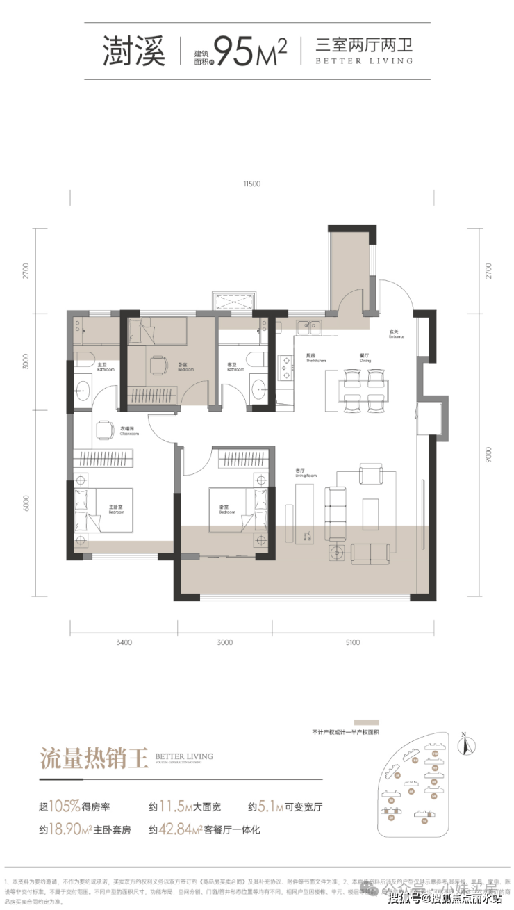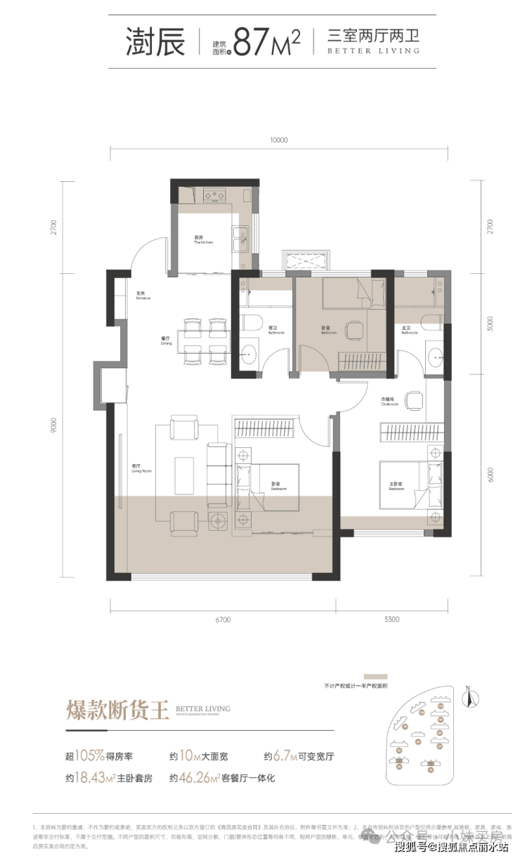 第三,最小87平起,这么刚需的面积,也能实现105%+得房率,就更不用说了。
