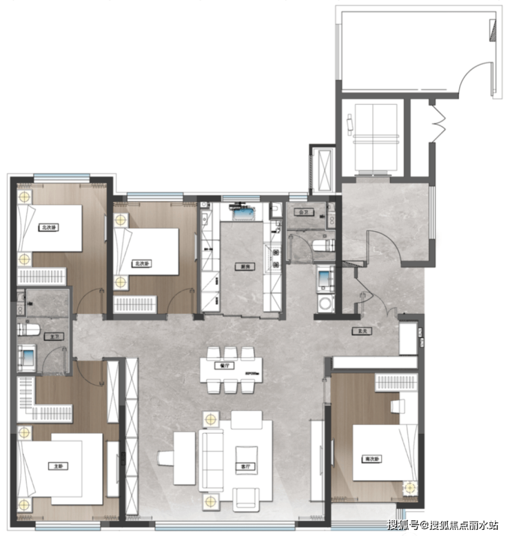 宽幕方正双厅,可实现厅房互换