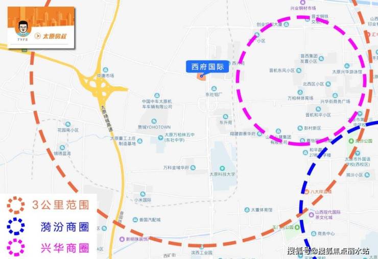 商业配套是本项目的短板。周围没有连锁超市和大型市场,日常消费只能依靠小区内的配套商业;距离漪汾商圈3公里以上,而且项目紧邻两条快速路,也不利于商业发展,周边很难有大型商超入驻;不过在尖草坪区2019年任务清单里有一条“加快三给片区、兴华片区回迁安置房建设,助力兴华商圈发展”,未来的商业布局还是很令人期待的。