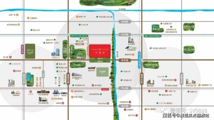 【公园配套】:东临约40公里民心河景观长廊,南侧为华药公园,西侧是规划中的市政公园、广场,华药历史博物馆等