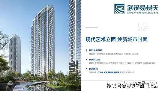 【项目本体】:本项目作为在汉口长江新区打造“语系”作品,楼体外立面采用经典米白色与深灰色,简约直线线条设计,典雅大气,与长江新区城市衬托,构筑城市天际线。以及采用降噪中空 LOW-E 玻璃,隔绝外部噪音,私享静谧居家生活。