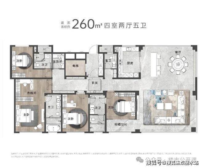 建面约260㎡ 四室两厅五卫