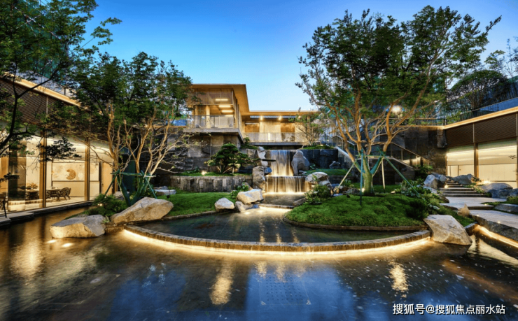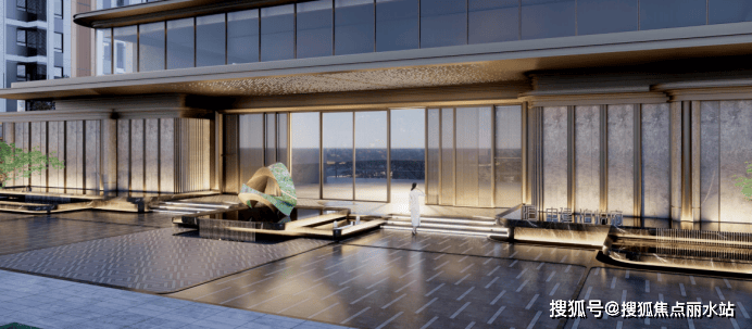 酒店式落客车道,奢华装饰的入户大堂,进门迎面而来的是社区中心景观,中轴线审美上的层层递进感,营造出了中建“府”系的仪式感。