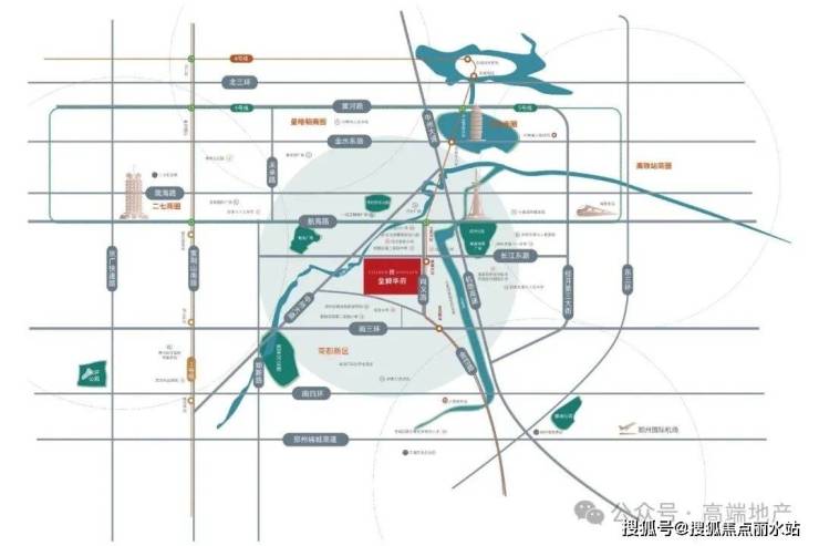黄金围合区域,中州大道、南三环、机场高速、航海路等多条交通干道环伺