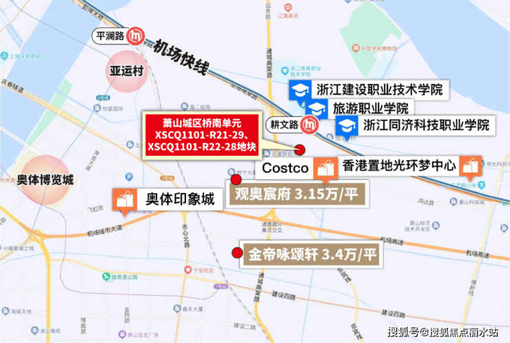 项目价值:距离地铁19号线(机场快线)耕文路站直线约280米,1站亚运村,2站江河汇。同时还有中国大陆第五家、浙江省首家Costco会员店步行可达,面积约98方起步,是普通人也能买的节奏。