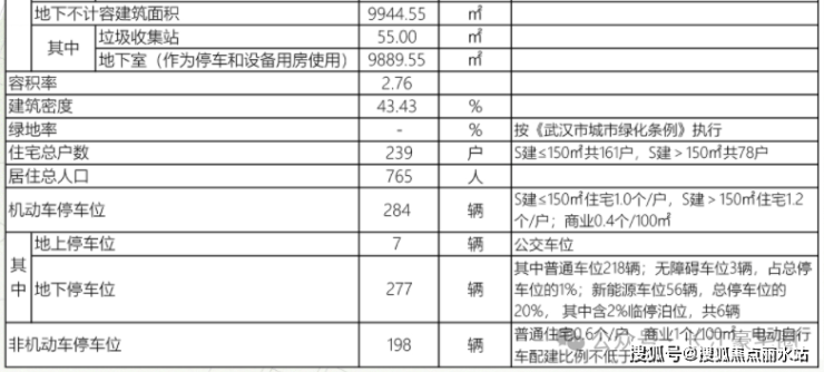 规划信息显示,项目总建面约6.4万方,住宅计容建面约3.7万方,容积率约2,76,共有239套房源,地下机动车停车位277个。计算可知,项目户均建面约156户,车位配比约1:1.15。