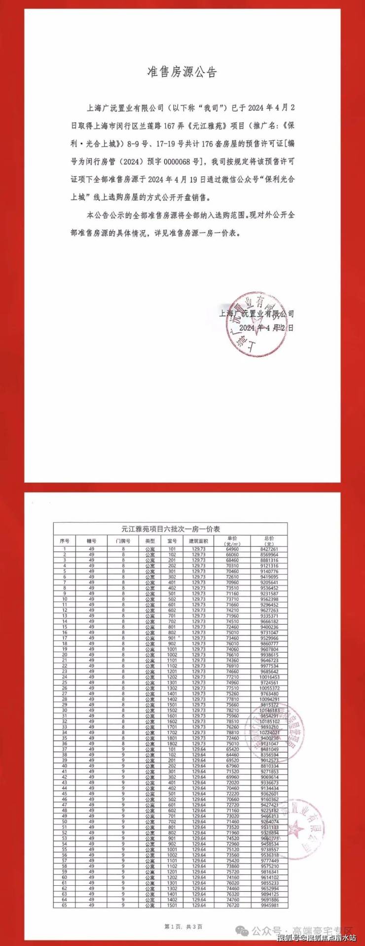一房一价表: