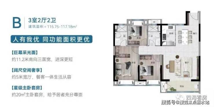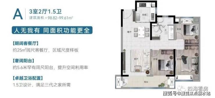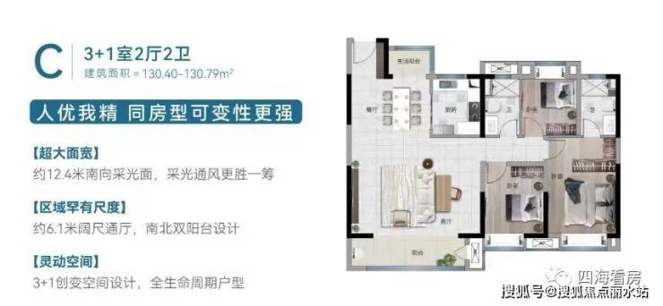 本次预售1#,7#楼,共计222套,约99-130㎡宽境三居,户户格局方正。全系南向三面宽,阔尺通厅设计,3+1创变空间,创新规划满足全生命周期生活所需。