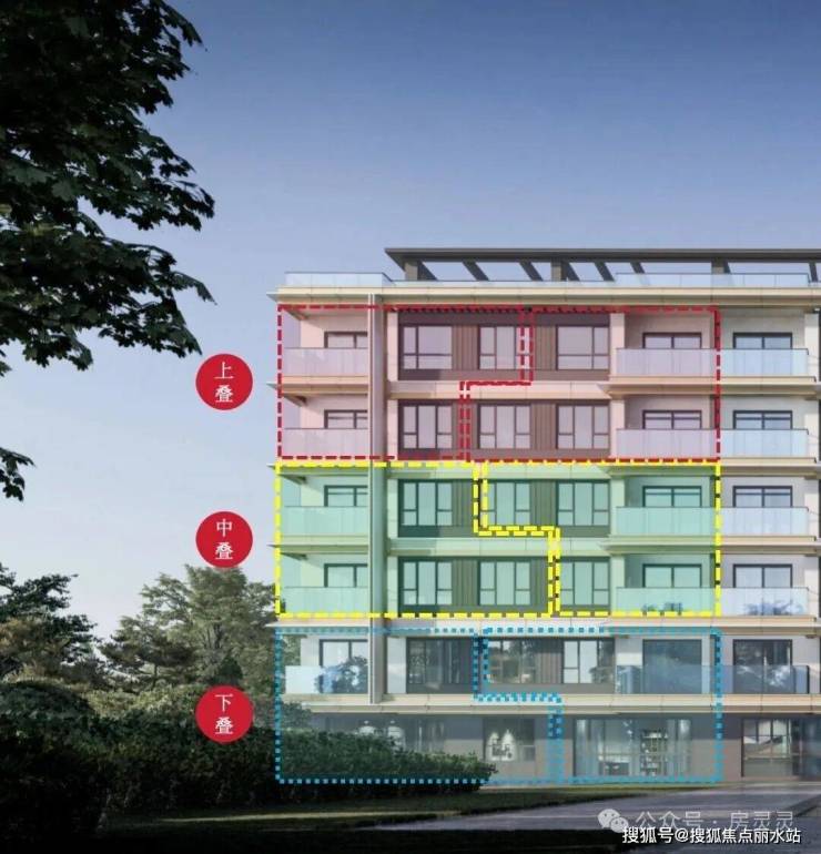 2、项目通过“咬合式”的设计,让相邻两个叠墅户型实现了“上2下3”和“上3下2”的咬合,就如同乐高模型,上下两层不完全重叠,奇偶层相互咬合向上排布,比普通设计拥有更大的开间尺度和更强采光效果。