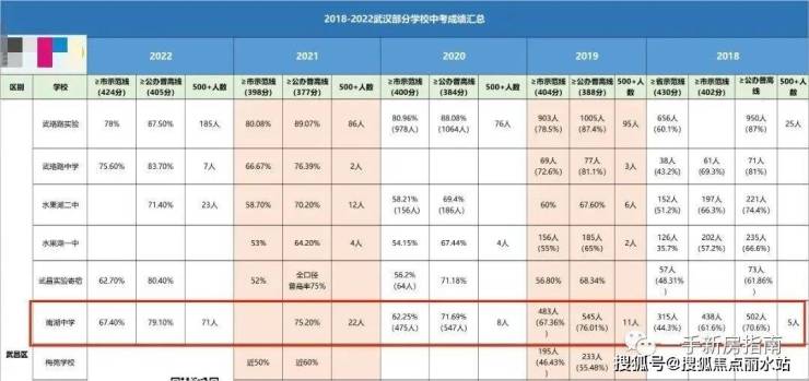 南湖中学作为全市最优质的公办初中,先后荣获“湖北省中小学综合实力100强”“湖北省科普示范学校”“武汉市中小学校园文化建设先进学校”等光荣称号。2022年普高率79.1%,示范率67.4%,中考成绩综合排名位列武汉市年度评级榜第12名;省实验等高中给予南湖中学的分配生名额高达169人,高额的分配生占比,被誉为省实验的后花园。