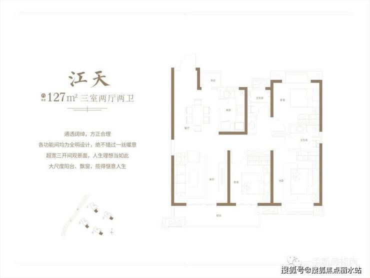 近11米游艇级观江面:三面观江,面宽阔达近11米,比肩豪华游艇的享受。