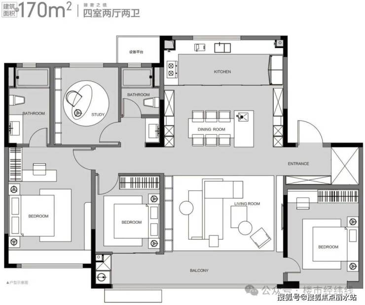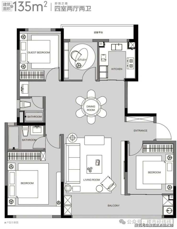 ⑤升级四叶草方正户型,四室各得其所,私属领地各自精彩。