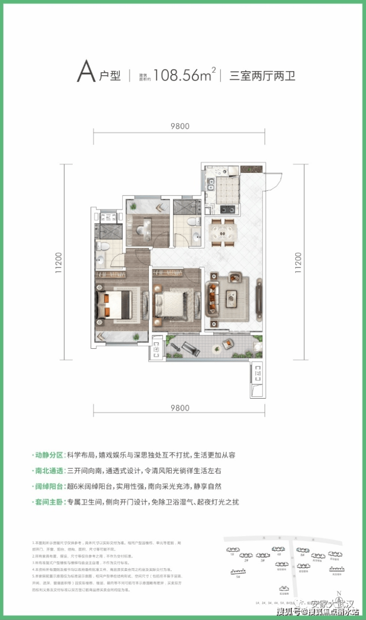 在售户型:88、89㎡三房两厅一卫