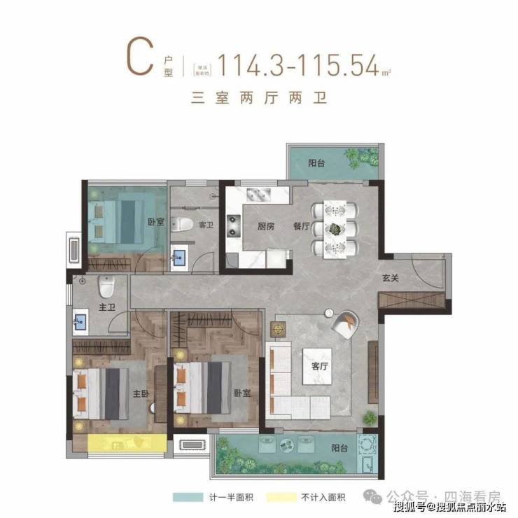 精研户型,提高房屋实用面积。相当于100平户型,实得91平,享受多一间房的美好,更好满足家庭全生命周期需求。