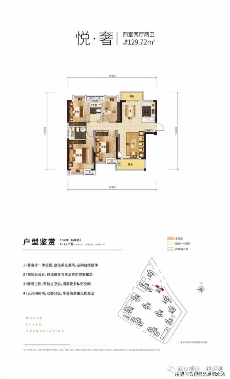 (10#楼户型分布图)做的是两梯四户,板式连廊结构,边户的采光通风会更好,中间户话也是南北通透,北面书房会有连廊影响,不过问题不大。