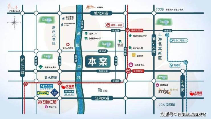 教育配套:直线 3km 范围内有 17 个幼儿园,6 个小学,如南通市唐闸小学、永兴小学等,4 个中学,如南通市第二初级中学、南通市第二中学等23。