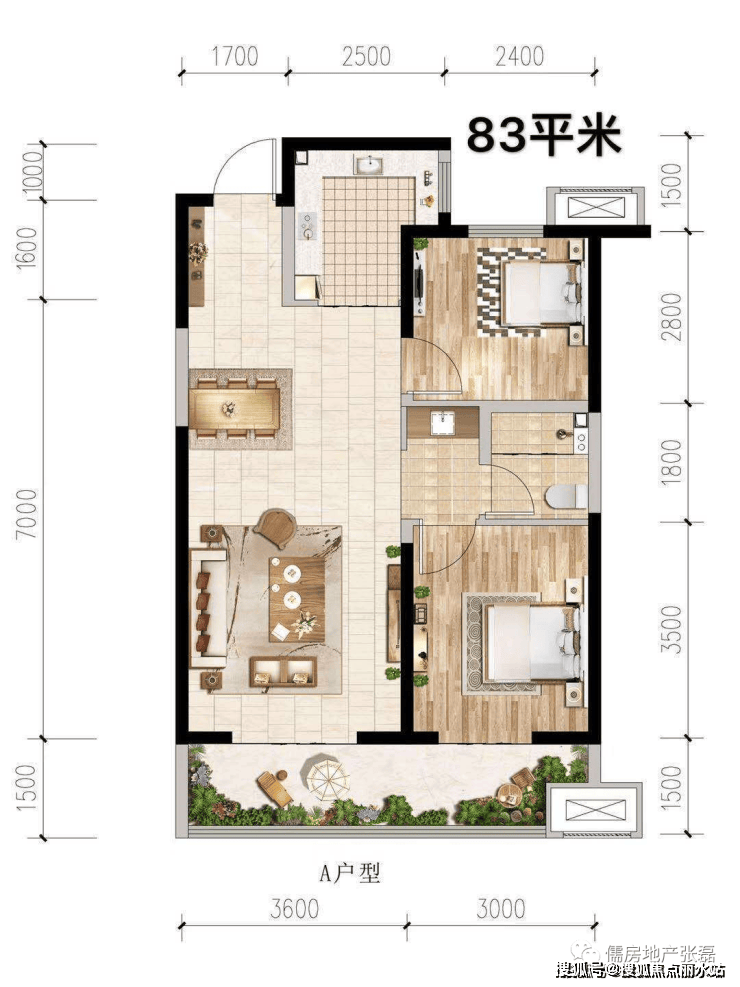 【户型设计】:83-155㎡舒适两居、多样三居、轩阔四居,5-7米长1.5-2.0米宽,一半面积交付,通透大阳台设计。