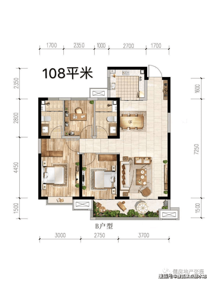 两居室的户型,户型方正,布局合理