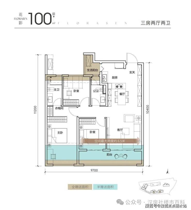 项目用地面积约1.2万方,总建筑面积约5.1万方,住宅建筑面积约3.5万方,容积率约2.99,户数308户,地下停车位318个,住宅车位配比1∶1.03。项目主推建面约100-145平准四代房源。1号楼共33层,1个单元,2梯4户;2号楼共2个单元,1单元16层,2单元18层,均为2梯3户;3号楼29层,1个单元,2梯3户。